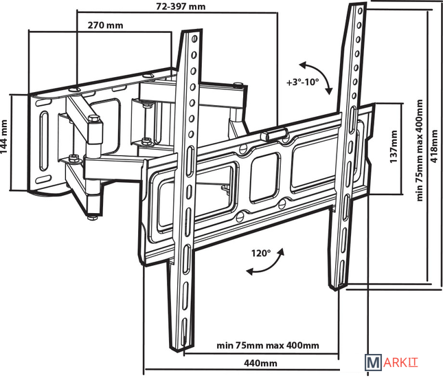 | Расстояние от стены (потолка) | 72 — 397 мм |