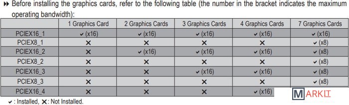 | Режимы работы нескольких PCIe x16 слотов |