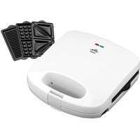 В комплекте три съемные пластины с антипригарным покрытием: для приготовления сэндвичей, для гриля и вафель.