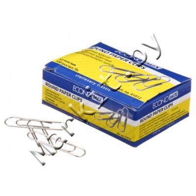 Скрепки Economix, 33 мм, 100 шт., округлые, никелированные Код: 33138